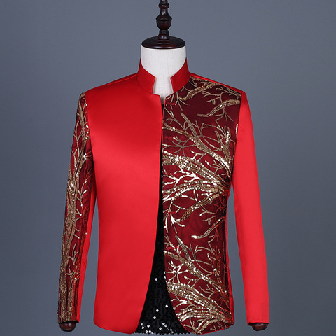Новый мужской банкетный костюм, пиджак с блестками, торжественное платье, костюмы со стоячим воротником, банкетные костюмы